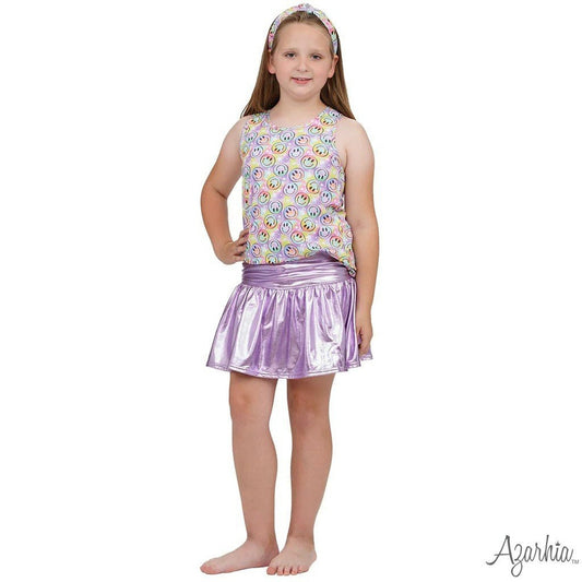 Azarhia Girls Slick Metallic Gathered Skort Lavender