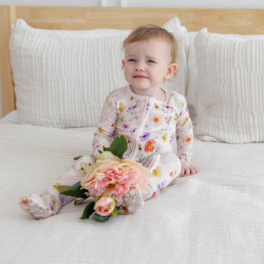 Kickee Pants Shrinking Violet Pressed Flowers Ruffle Footie