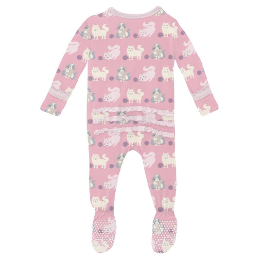 Kickee Pants Girls Cake Pop Cats & Yarn Ruffle Footie