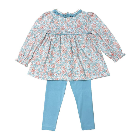 Petit Bebe Train Light Blue Gingham Knit Pant Set