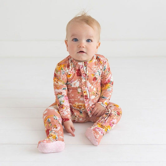 Little Me Watercolor Infant Baby Girls Footie with Hat