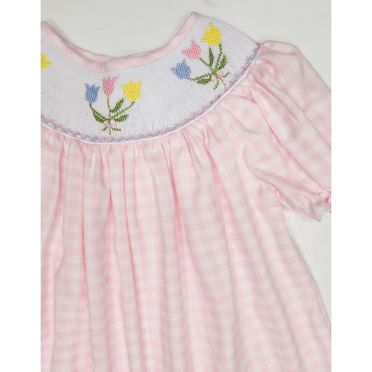 Sweet Dreams Pink Gingham Tulip Smocked Dress