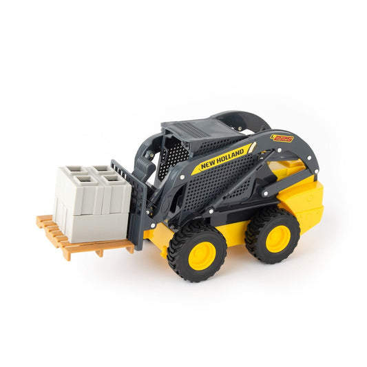 Tomy New Holland Construction 1:16 Scale Skid Steer Toy Set with Barrels, Cones and Blocks