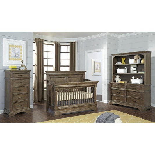 The beautiful wooden moldings and accent of this classic collection unique. The Kerrigan Nursery Collection features a traditional style crib and a convertible crib along with the coordinating case pieces.