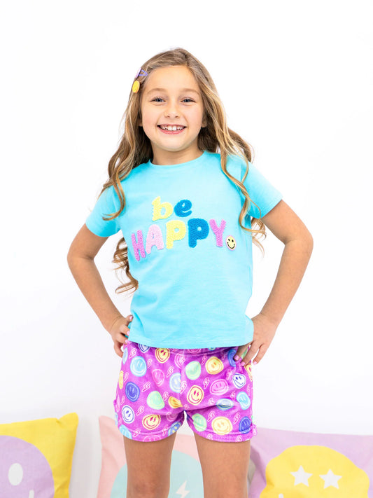 Preppy Goose Girls Two Piece Plush Smiley Faces Loungewear Shorts