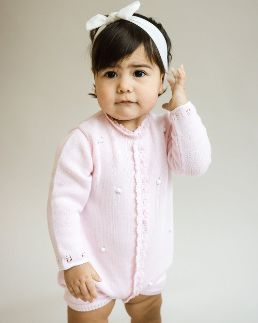Cuclie Baby Rosette Knit Bubble Romper - Pink