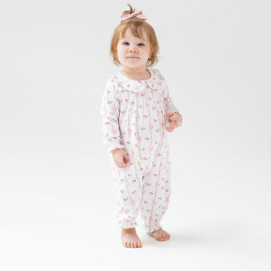 Angel Dear Dainty Buds & Bows Stripe Smocked Romper