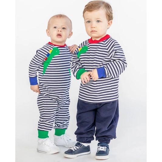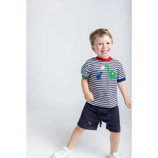 Florence Eiseman Boys Dog & Dinosaur Stripe Knit Shirt