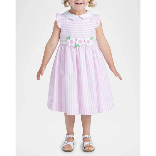 Florence Eiseman Garden Delights Linen Look Stripe Dress with Flowers