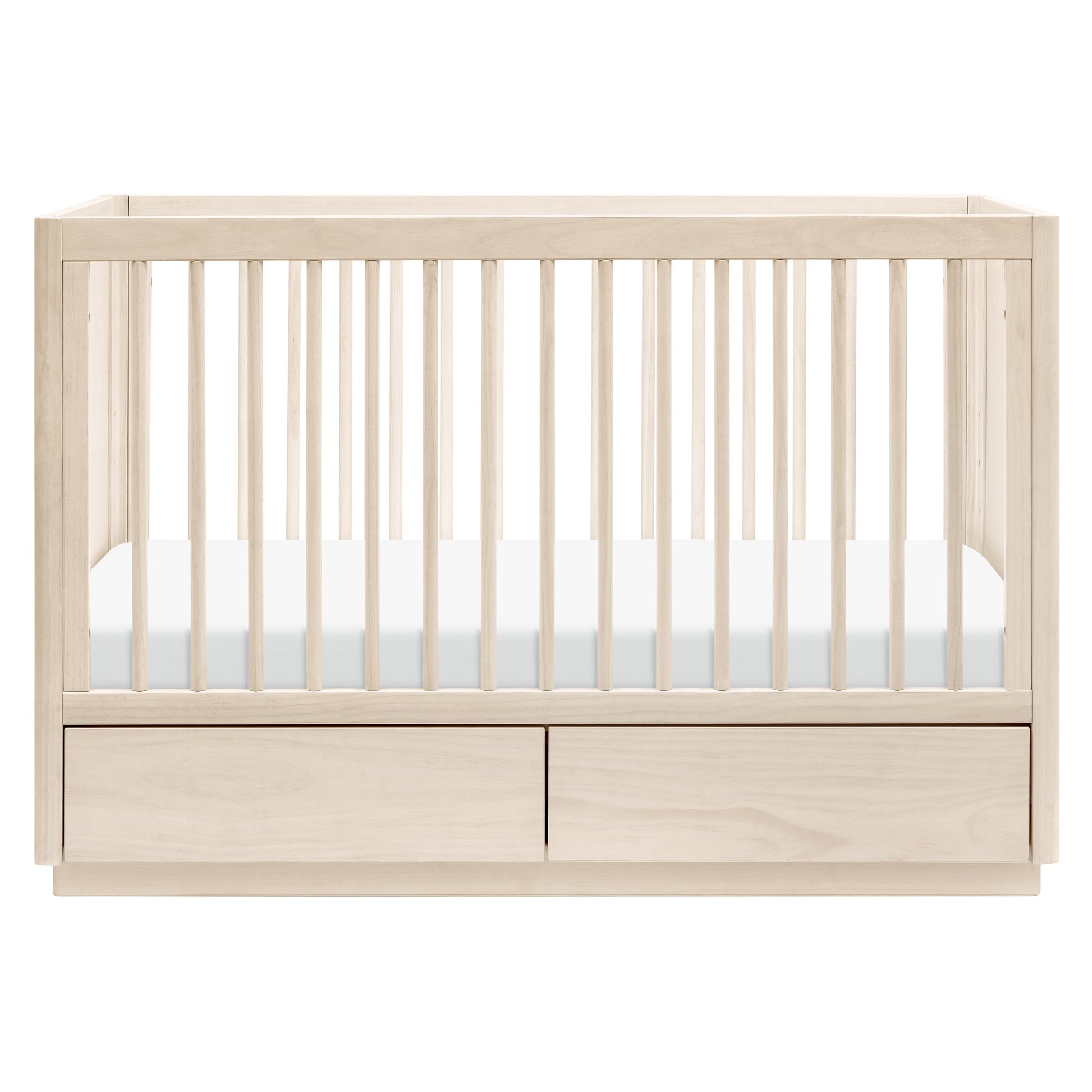 The Bento 3-in-1 Convertible Storage Crib celebrates modern minimalism with softly curved edges, hidden drawer pulls, and raised platform base. It's the thoughtful details that set this crib apart with two under-crib storage drawers and included toddler bed conversion kit. Made with sustainable New Zealand pine wood and screened for harmful chemical emissions to ensure it meets GREENGUARD Gold Certification.