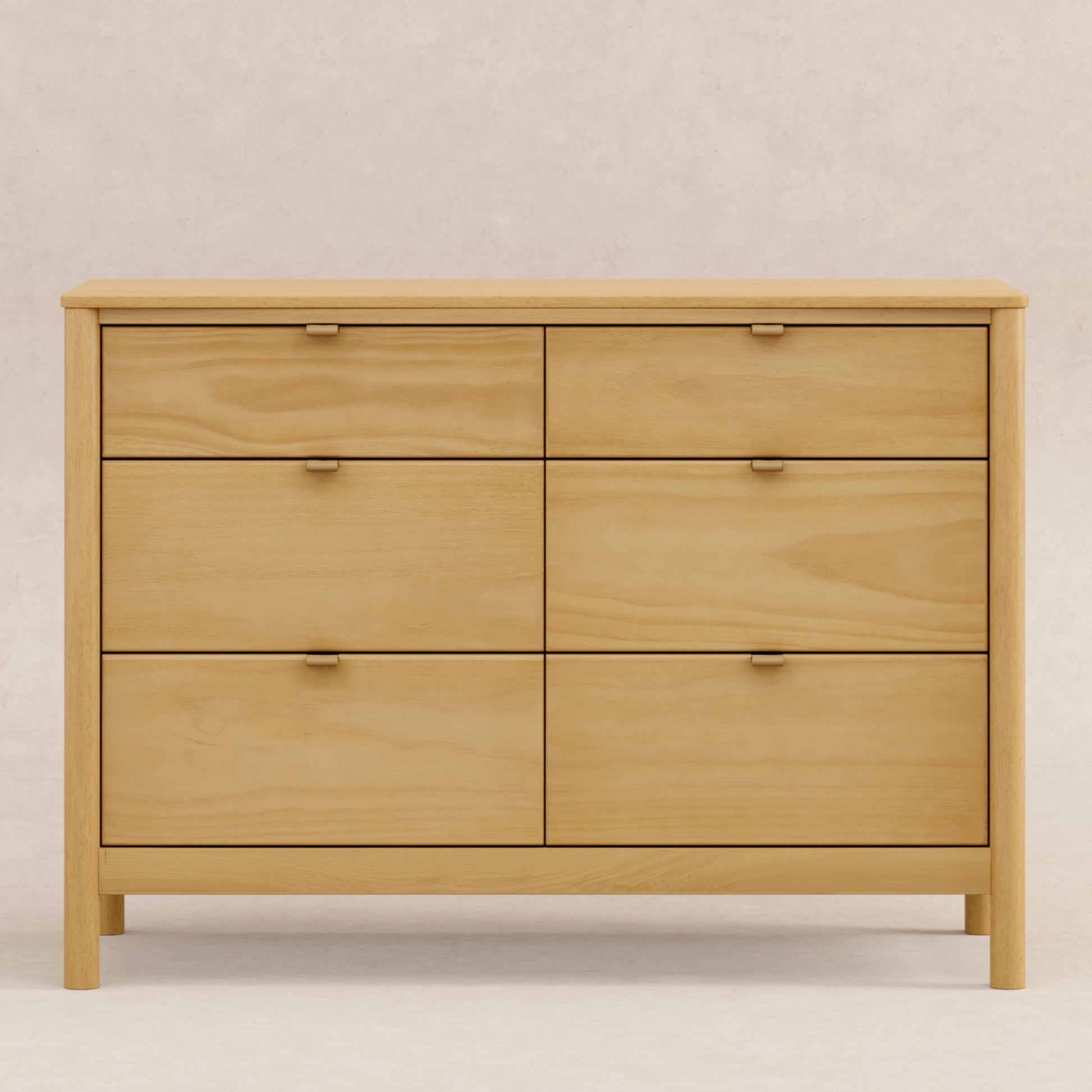 The simple yet sophisticated Bondi 6-Drawer Assembled Dresser complements both the Babyletto Bondi Cane 3-in-1 Crib and the Bondi Boucle 4-in-1 Crib with its warm wood finish and tonal vegan leather drawer pulls, rounded posts and minimalist silhouette. It's designed for the nursery with spacious smooth-glide drawers, included anti-tip kit for safety, and best-of-all it arrives fully assembled, ready out of the box.