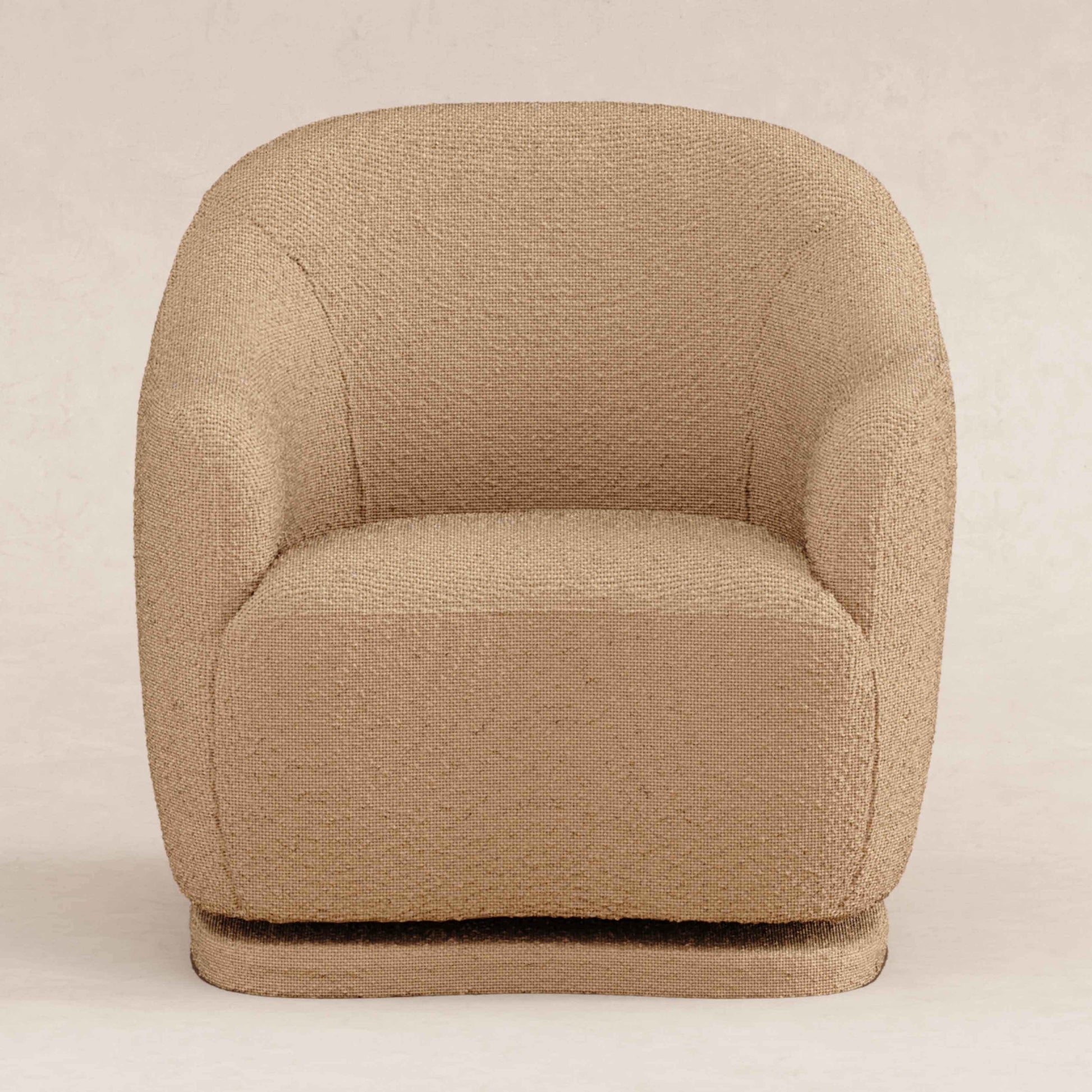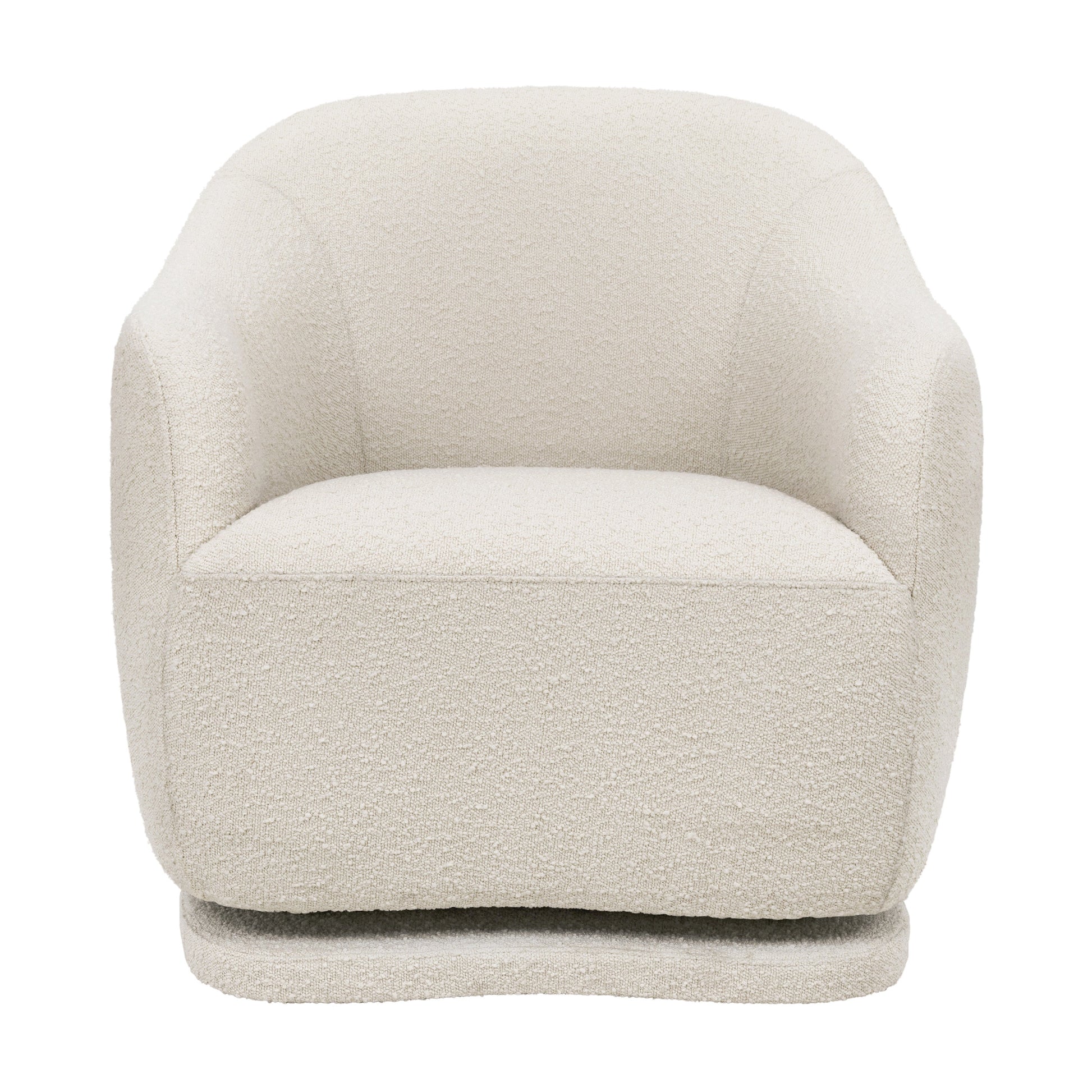 Cozy up and relax with your little one in the comfort of the Foy Glider. Its softly rounded, curved silhouette and spacious seat make for heavenly cuddling while the tonal upholstered base allows you to effortlessly glide your babe to sleep. Upholstered by hand in beautifully textured boucle fabric, the Foy Glider brings a cozy modern, contemporary feel to the nursery or your favorite reading nook.