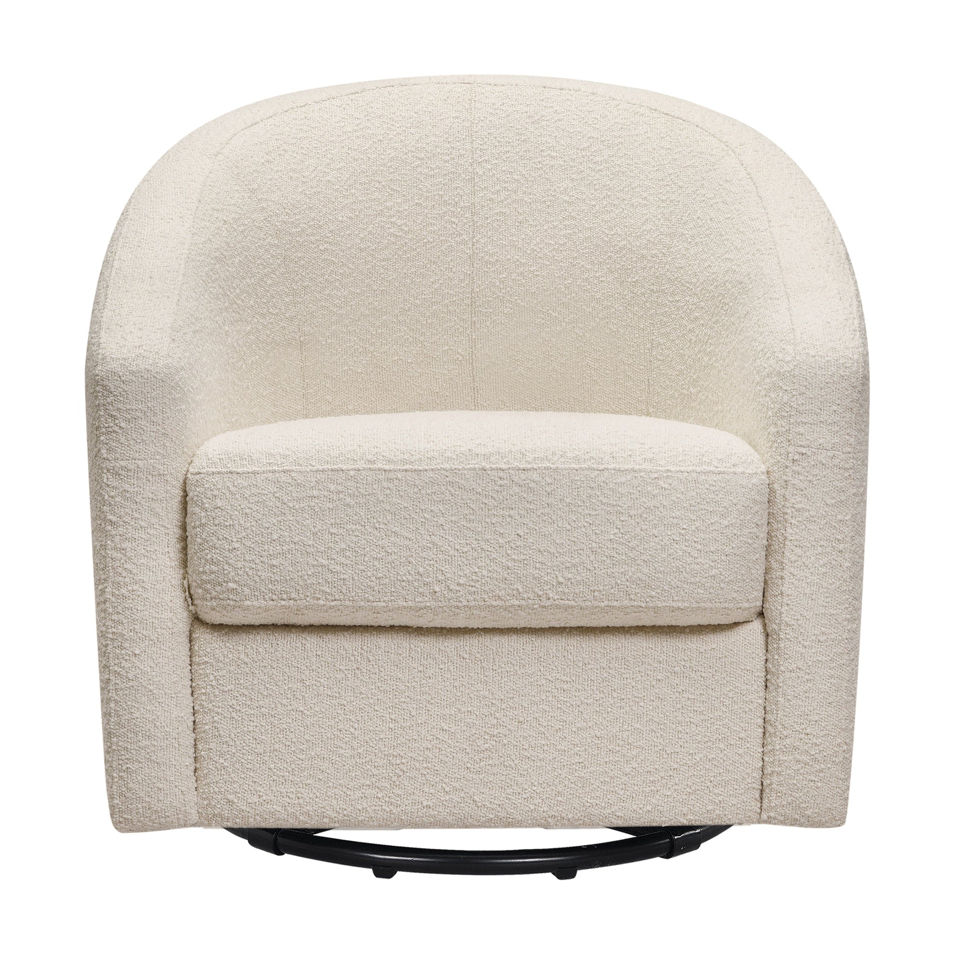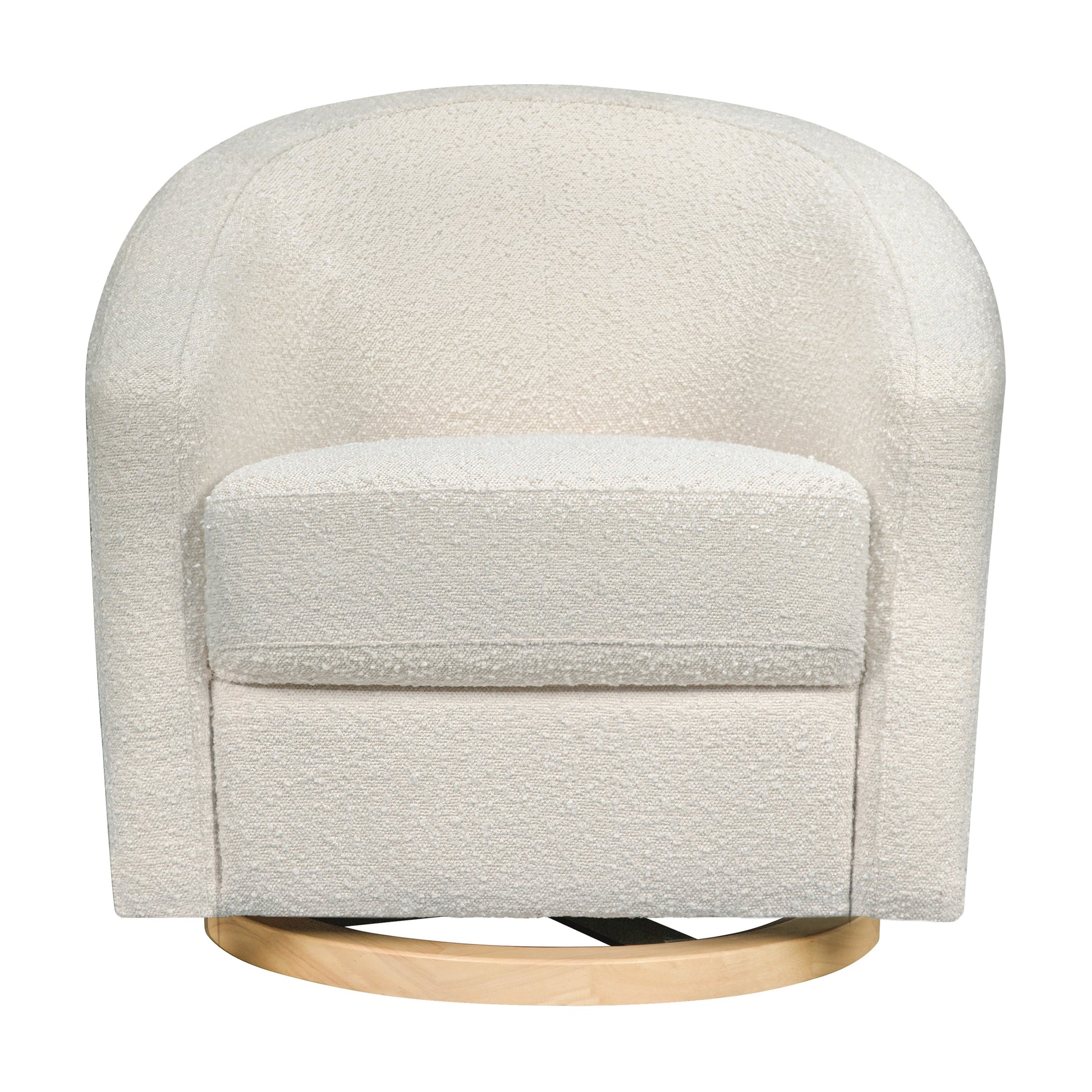 Snuggle in and rock baby to sweet slumber with the sublime comfort of the Madison Swivel Glider. This soft and cozy glider's rounded back and spacious seat make for heavenly cuddling and story time. The Madison Glider’s metal swivel mechanism base allows you to turn and glide a full 360°; easily turn to talk with your family while staying put with baby. Upholstered by hand in ultra-soft water-repellant and stain-resistant microsuede, the classic mid-century curves of the Madison Swivel Glider will add beautiful comfort during the nursery years and beyond.