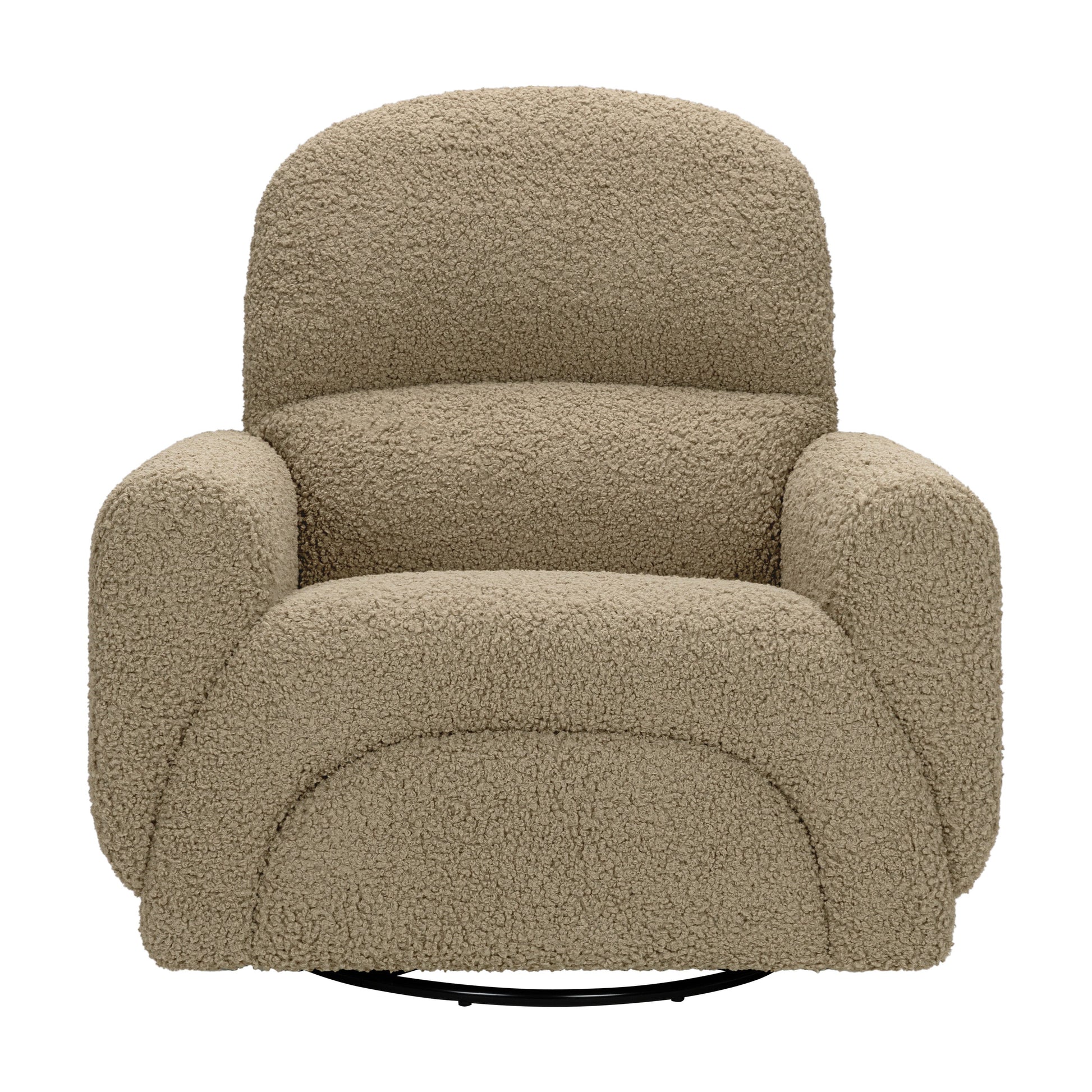 The Rainbow Recliner & Swivel Glider combines playful charm with luxurious comfort, all on a lovingly rounded silhouette. Rest and recharge on a plush seat while enjoying a smooth 360 degrees swivel motion and easily recline with its hidden side lever. The Rainbow is upholstered by hand in cozy teddy loop fabric, providing ultimate style that will last long after the early years. Pair with the Kiwi Gliding Ottoman to complete the look.