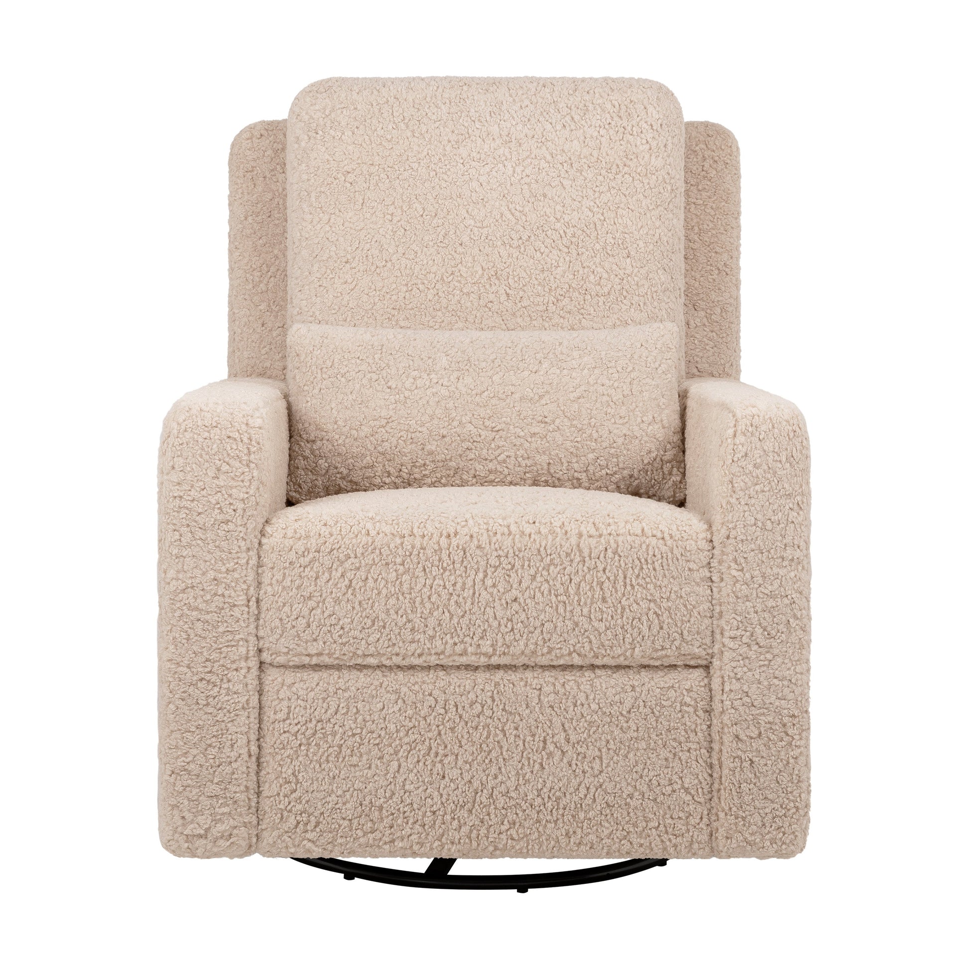 The Sigi Recliner and Swivel Glider is a stylish choice with its crisp, modern design and comfortable seat. Rest and recharge in this recliner with its smooth 360 degrees swivel motion and effortless back and forth gliding. Lean back and relax in the reclined position with the supportive footrest. Upholstered by hand in beautifully textured shearling fabric to bring a cozy modern-luxe feel during the nursery years and beyond.