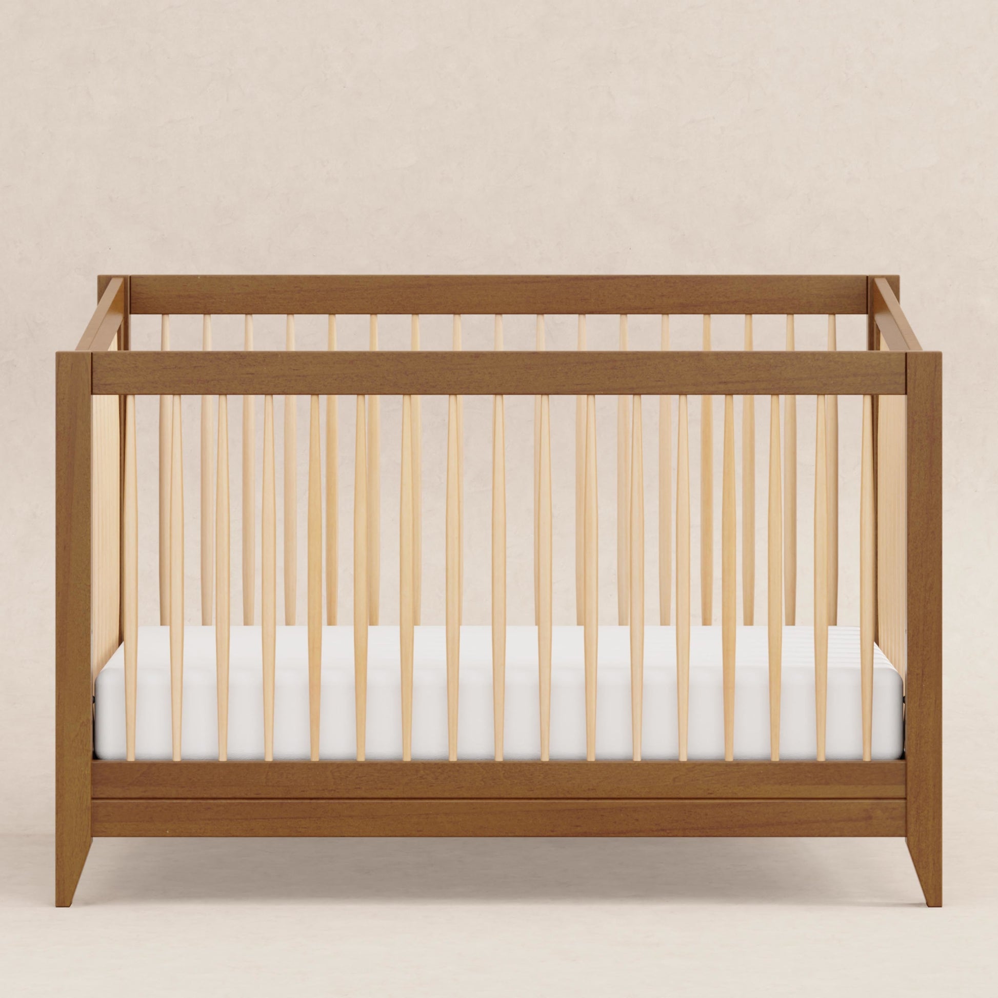 - PLAYFUL TIMELESS DESIGN: Featuring a modern, clean silhouette and classic rounded spindles with a slightly raised back. Flared tapered legs add a playful touch to this sophisticated crib.
