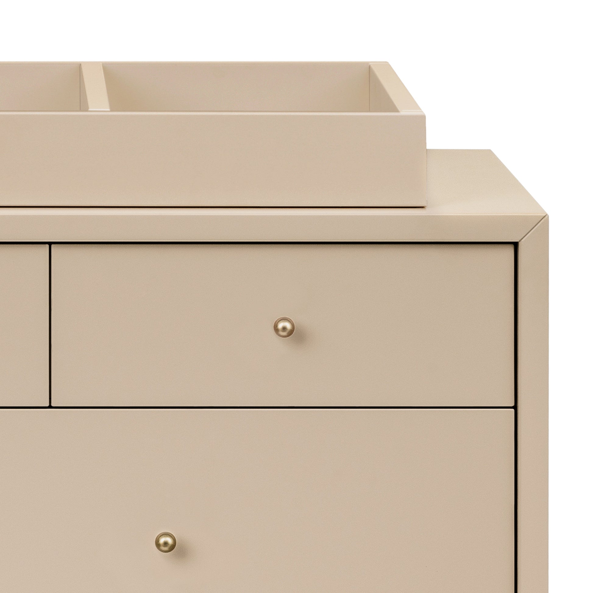 Convert your dresser into a convenient changing table with the Universal Wide Removable Changing Tray. The changing tray comes with a smaller compartment to keep baby changing necessities close at hand. As child outgrows its functionality as a changing station, the tray and included safety brackets can be easily removed to reclaim the space on top of the dresser.