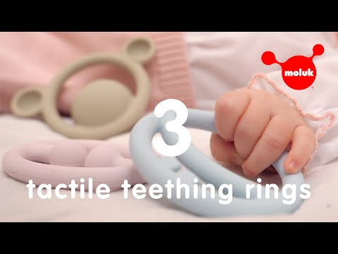 Encourage your child's natural curiosity with Moluk's Nigi Nagi and Nogi Teething Rings.