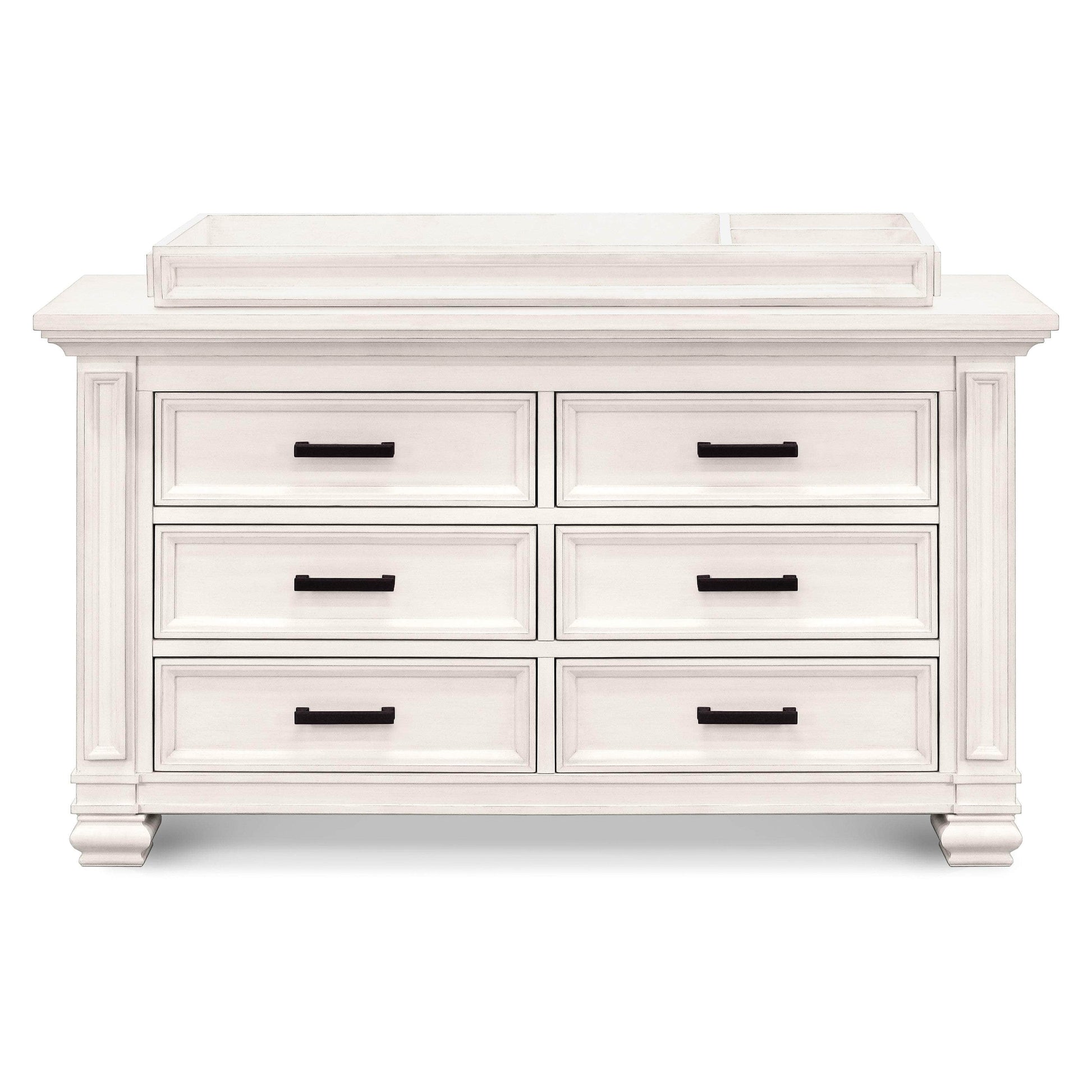 With intricate molding details adorning each side, the Palermo Changing Tray is perfect for adding stylized function to your Palermo 6-Drawer Dresser. The changing tray secures to the dresser using safety brackets, converting it into a changing table, and includes space for a changing pad as well as two compartments for your baby’s necessities. The tray is easily removable, allowing your dresser to grow with your baby.