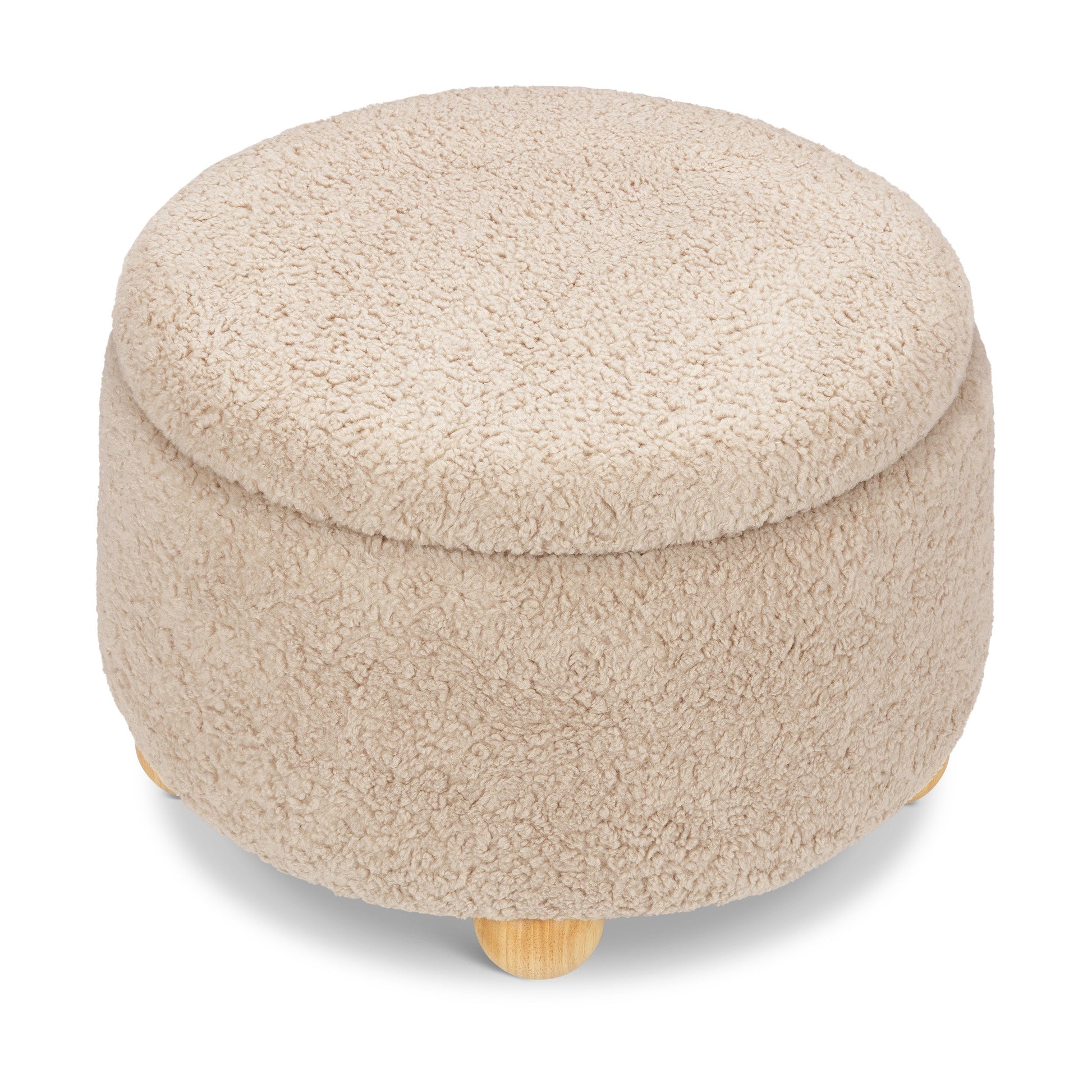 The Tuffet Storage Ottoman combines style and function with its plush upholstery and versatile design. Wooden ball feet add a distinctive touch while providing sturdy support, and the removable lid reveals a spacious interior for convenient storage. Perfect as a footrest, extra seating, or an elegant organizational solution.